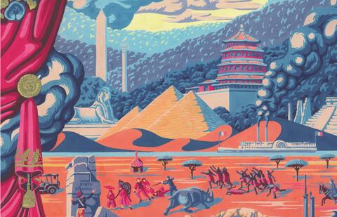 17h30 : Installation du papier-peint « Théâtre de salon » de Thomas Hayman à la Monnaie de Paris, avec Manuel Charpy, Noémie Etienne et Aurélien Rousseau